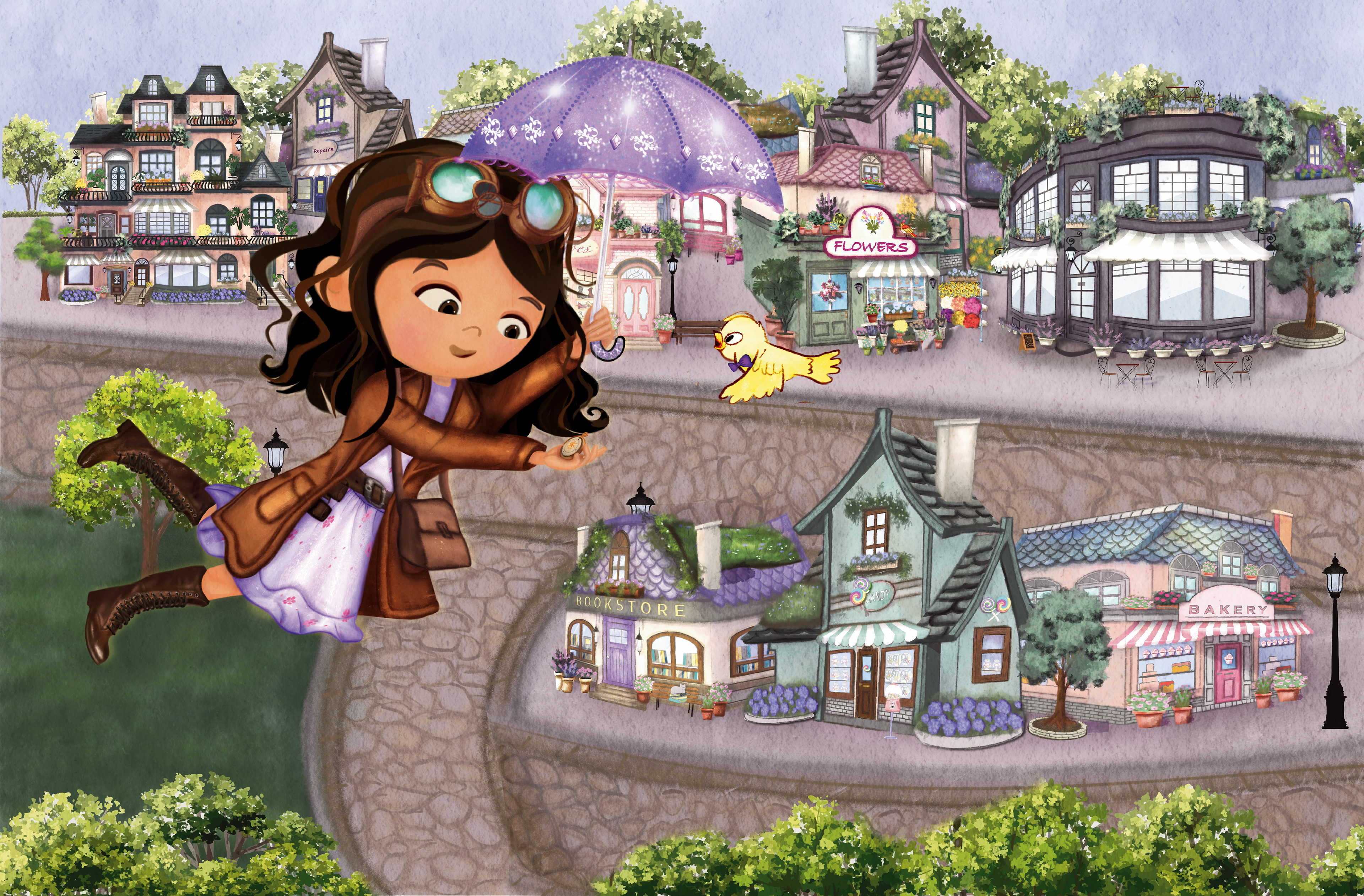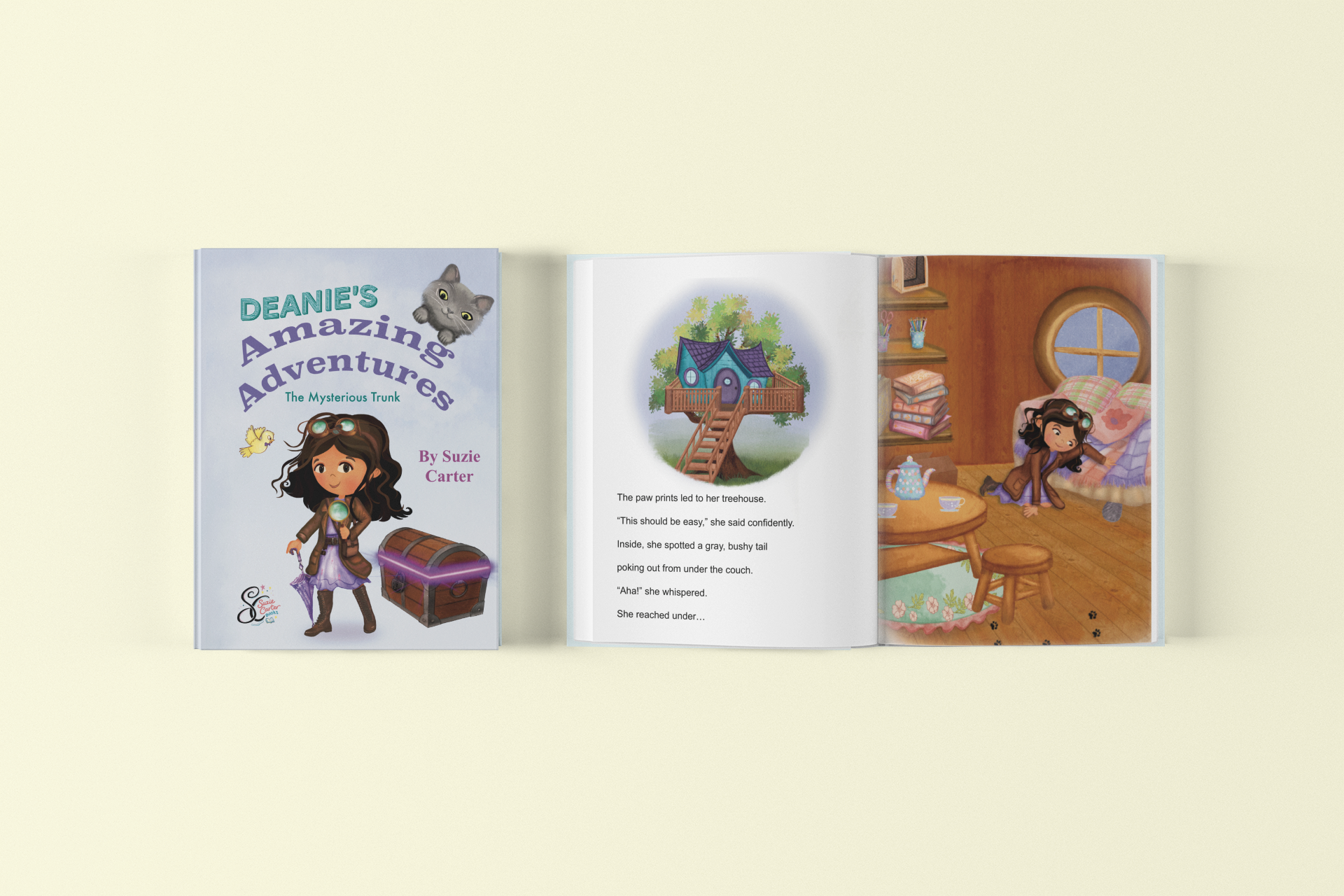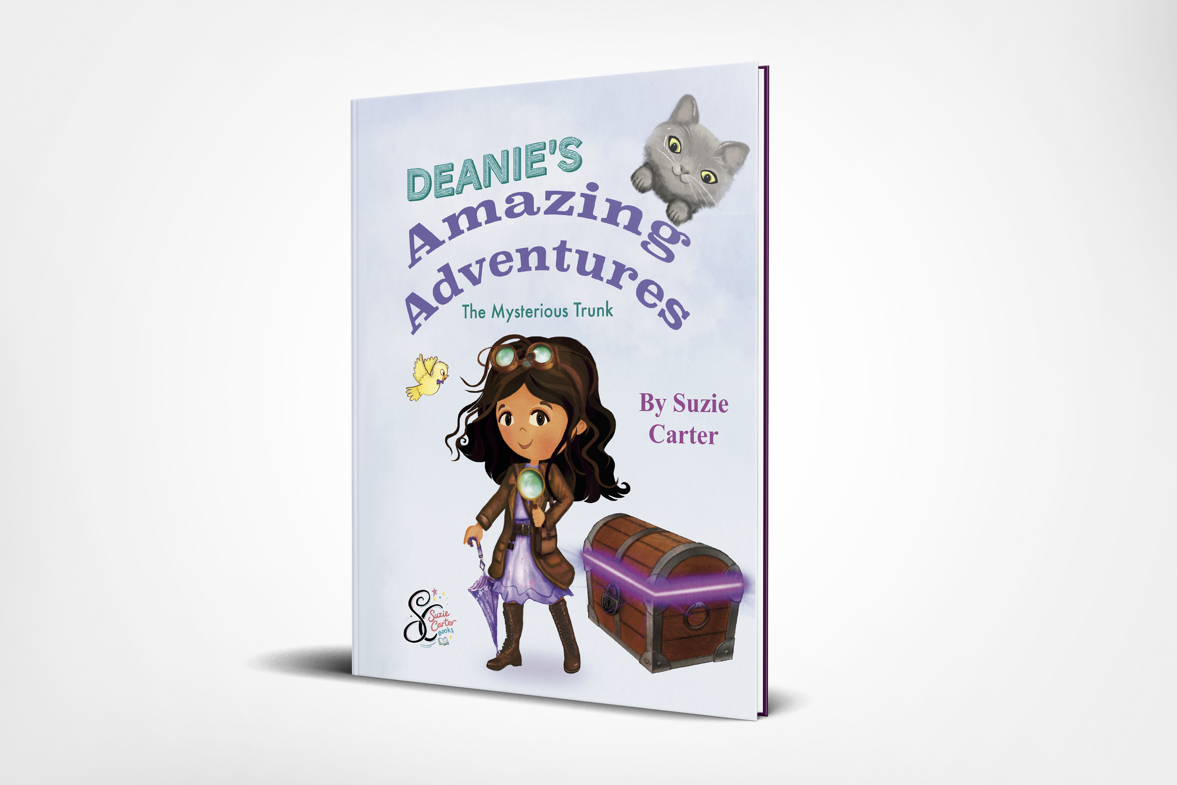 The Mysterious Trunk -When Deanie’s world-class scaredy-cat disappears on moving day, she discovers a glowing attic trunk filled with her grandfather’s secret detective inventions — including a flying umbrella and a compass that points not north, but where you’re needed most. To rescue her cat, Deanie must follow clues across rooftops and over her own fear of heights, proving that bravery isn’t about not being scared — it’s about opening the umbrella anyway.